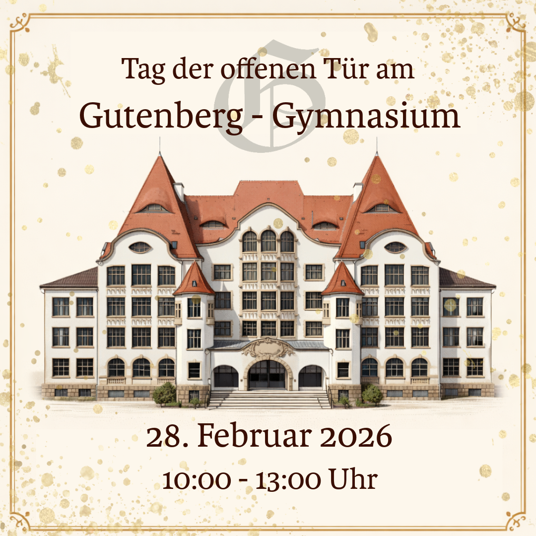 Das Gutenberg-Gymnasium lädt auch dieses Jahr wieder alle interessierten Eltern und Schüler:innen zum Tag der offenen Tür ein.
